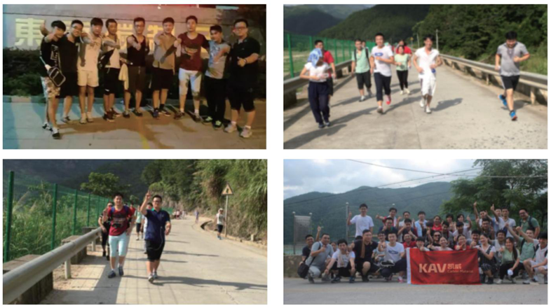这条路漫漫,有山路,有平路,有上坡,有下坡,天色渐渐变黑。外界环境虽然一直变化,不变的是一行团结行走在路上的凯威一家人,大家一路欢唱、聊侃、微信发红包、甚至正步走起了阅兵步伐,抛弃了工作中的烦恼与压力。